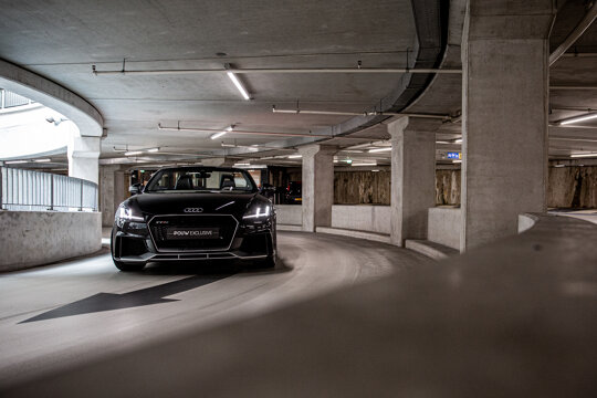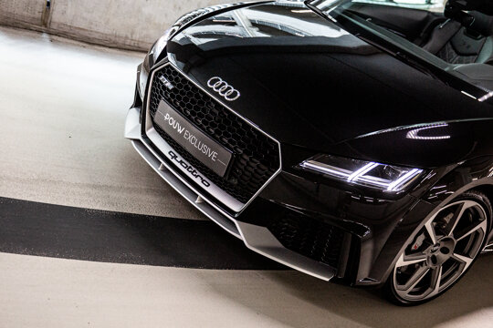 De indrukwekkende singleframe-grille met honingraatpatroon, de nieuw ontworpen brede dorpels, de opvallende achterdiffusor en de indrukwekkende ovale RS-uitlaten zijn slechts enkele voorbeelden van het sportieve exterieur van de Audi TT RS Roadster.