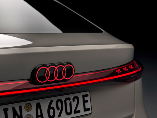 Als de verlichting aan is, vereist het logo de perfecte kleur om te zorgen voor een harmonieus geheel met de achterverlichting. Daarvoor moesten de lichtdesigners van Audi de ideale tint rood creëren die door de witte lak van het logo heen schijnt. Het klinkt niet zo moeilijk, maar het heeft uiteindelijk veel werk gekost om het perfecte resultaat te bereiken.