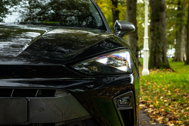 De CUPRA Leon herken je direct aan het scherpe silhouet met shark-nose voorkant, grote luchtinlaten en de kenmerkende LED-signatuur.