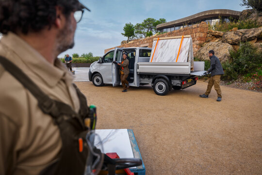 De Volkswagen e-Transporter Pick-Up Dubbele Cabine combineert zes zitplaatsen met een open laadbak die plaats biedt aan twee europallets. Hiermee is hij de perfecte partner voor professionals in de bouw, installatie of groenvoorziening die zowel personeel als materiaal efficiënt willen vervoeren.