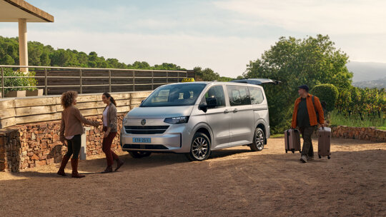 De Volkswagen e-Transporter Kombi Taxi is ontworpen met oog voor de dagelijkse praktijk van taxivervoer. Dankzij de standaard bijrijdersbank biedt hij plaats aan negen personen in een 3-3-3-zitopstelling. Het robuuste interieur met vuilafstotende en slijtvaste bekleding is klaar voor intensief gebruik. Voor extra comfort zijn Climatronic klimaatregeling, elektrische bijverwarming en een warmtepomp standaard aanwezig. Andere highlights zijn de digitale cockpit, LED-verlichting, 16 inch wielen en parkeersensoren achter.